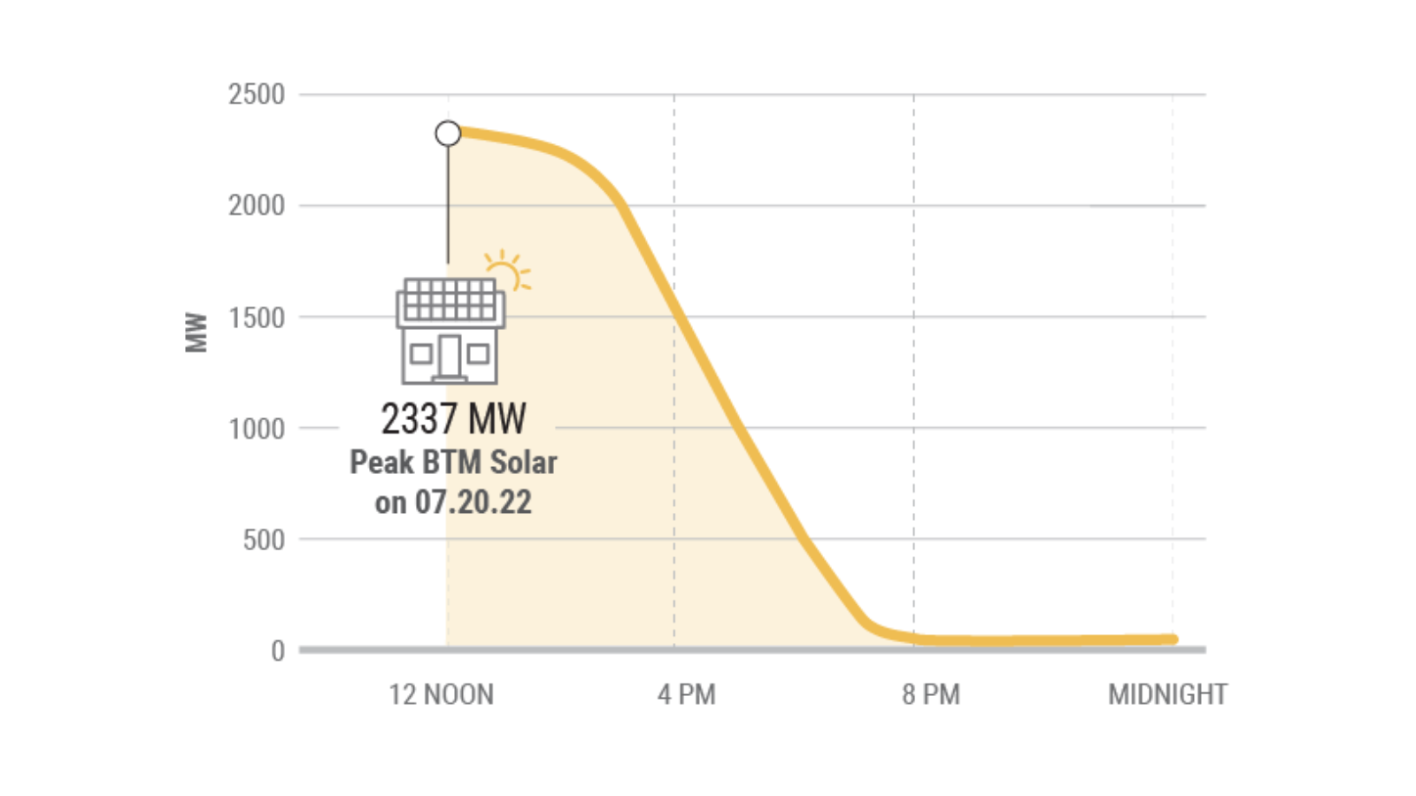 To demonstrate how rapidly the system is changing these days, on last year’s peak day, June 29, 2021, another hot and sunny day, system demand reached 30,919 MW during the 5PM hour. At that time, BTM solar produced 695 MW. Comparing these 2021 figures to this year, BTM solar production was about 50 percent higher during the 2022 peak hour. Most of this increased production is due to the installation of over 800 MW of additional BTM solar capacity in just the past year. That means cleaner resources are powering homes and businesses and less electricity needs to be generated by fossil fuel resources.