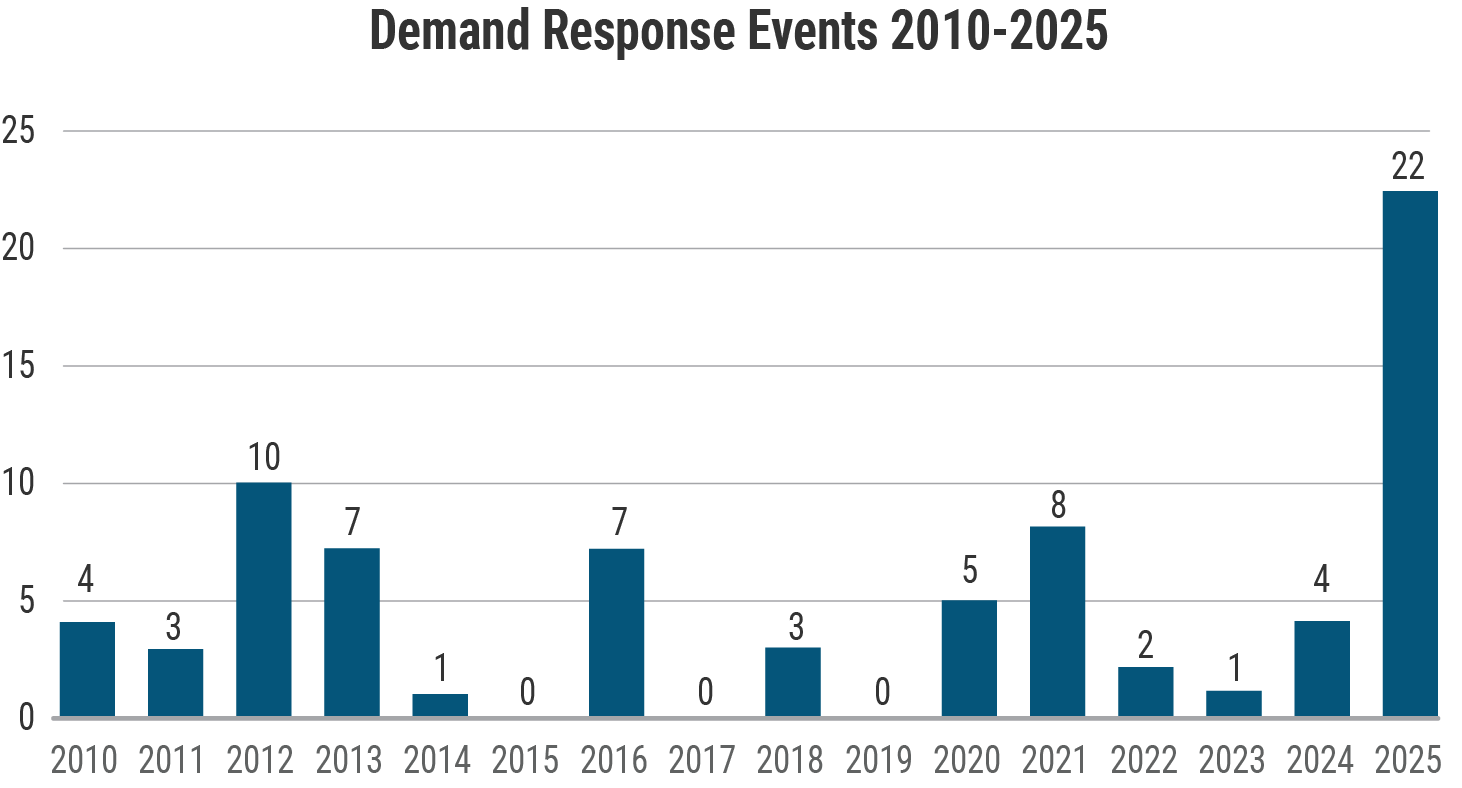 One striking indicator: NYISO activated demand response— a critical method of reducing load before EOPs are deployed—22 times during the 2025 peak seasons. In previous years, such activations were rare or nonexistent.