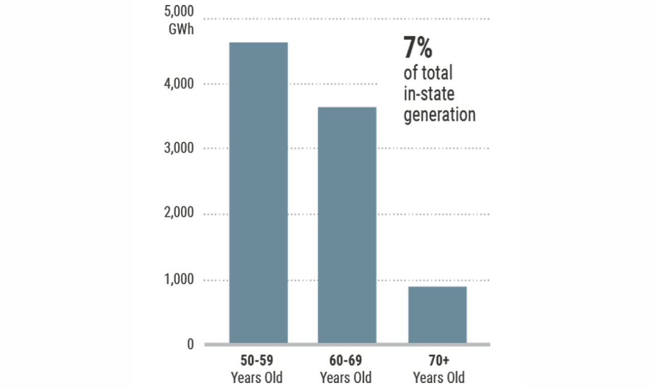 Roughly 25% of the state’s total generating capacity is fossil-fuel-based generation that has been in operation for more than 50 years. As these generators age, they are experiencing more frequent and longer outages.