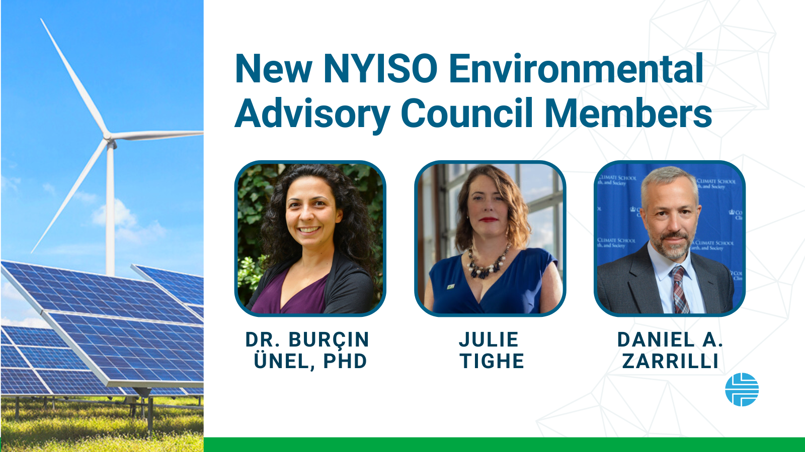 Rensselaer, NY -- The New York Independent System Operator (NYISO) is pleased to announce that Julie Tighe, Dr. Burçin Ünel, PhD, and Daniel Zarrilli, P.E. have been appointed to serve on the organization’s Environmental Advisory Council.
