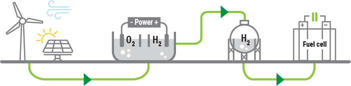 Green hydrogen is made by electrolyzing water using renewable energy, such as solar or wind. And by using excess energy from renewables, green hydrogen presents a method of storing energy. Unlike batteries, which work best as short-term storage vessels, hydrogen can be stored for months or years.