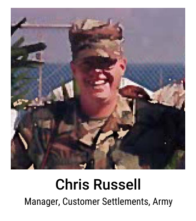 “One of the biggest benefits of being in the military was getting that experience in leading, and being trusted with that level of responsibility,” said former Army Captain Chris Russell, now manager of Customer Settlements. “It’s an amazing experience and one you can take with you.”