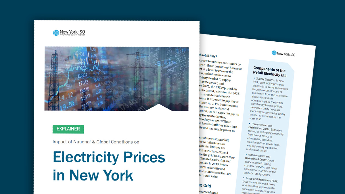 Electricity prices are rising across New York, and understanding what drives those costs has never been more important. In this Power Trends podcast, NYISO Vice President of Market Structures Shaun Johnson breaks down the factors shaping today’s electricity supply charges and explains how wholesale markets produce the most cost-efficient solutions to meet consumer demand.