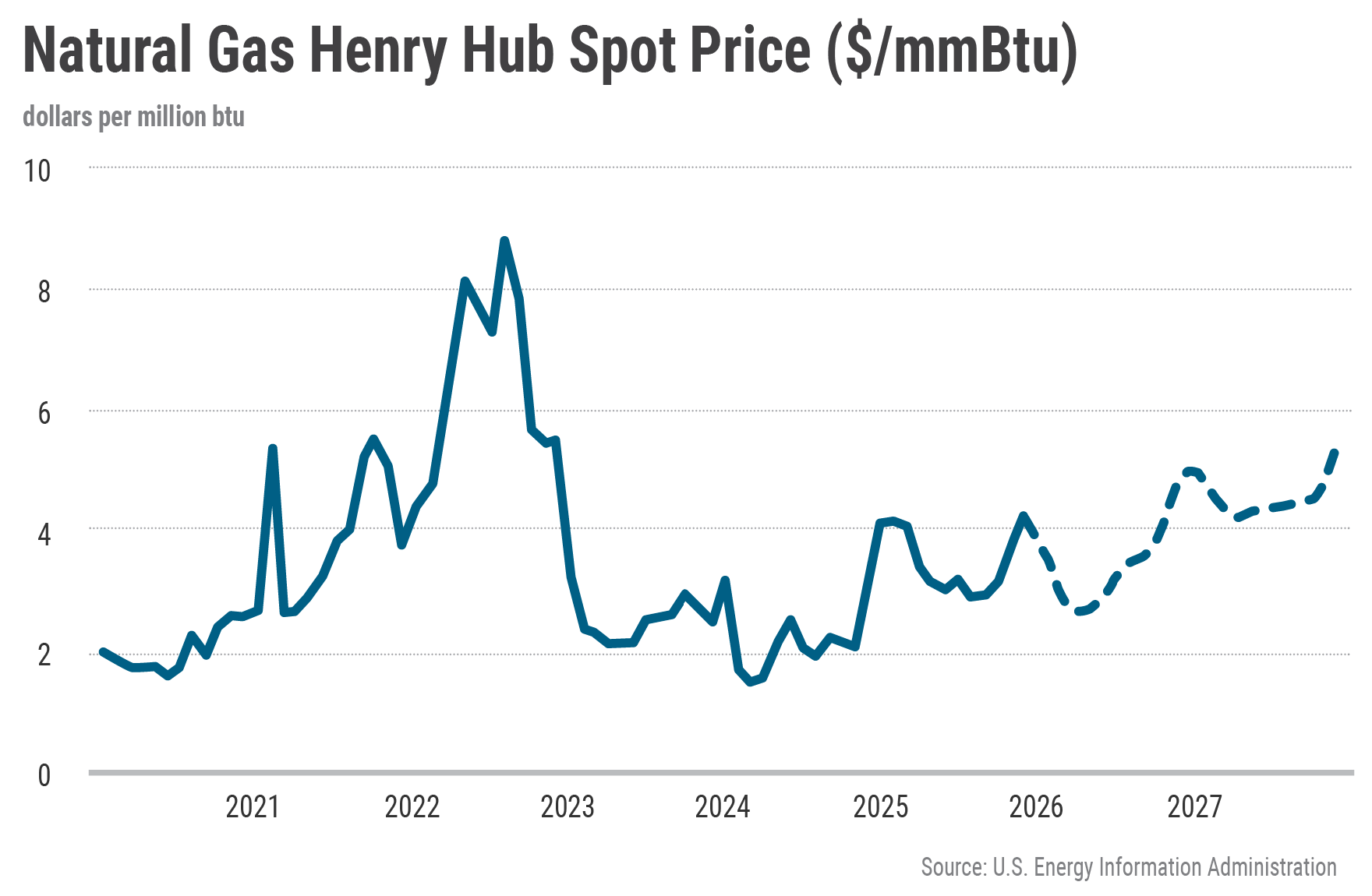 This trend isn’t limited to New York. Natural gas prices are increasing nationwide. According to the U.S. Energy Information Administration’s (EIA) Short Term Energy Outlook, colder than expected winter weather has driven up heating demand and accelerated withdrawals from gas inventories. The Henry Hub spot price is forecast to average about $3.64 per MMBtu this winter, a 3.7% increase over last winter.